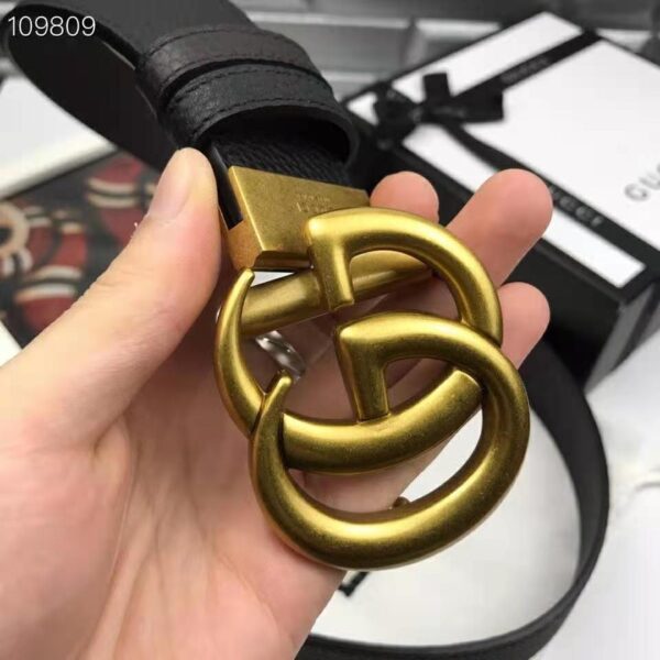 Gucci Unisex Reversible Leather Belt with Double G Buckle 4 cm Width-Black