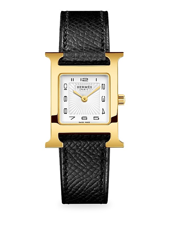 HERMÈS Heure H 25MM Goldplated & Leather Strap Watch