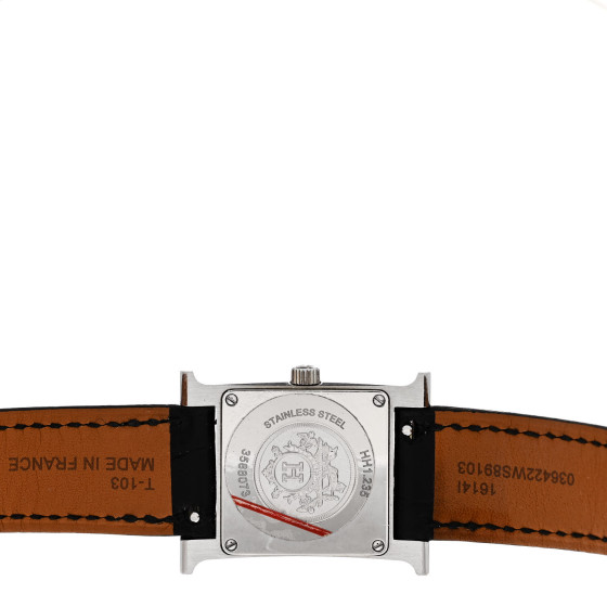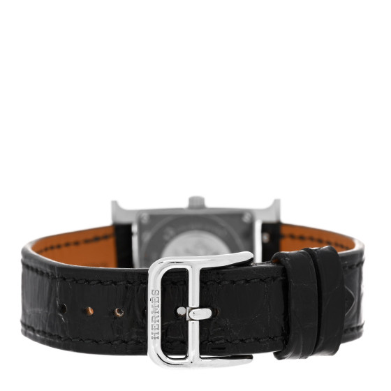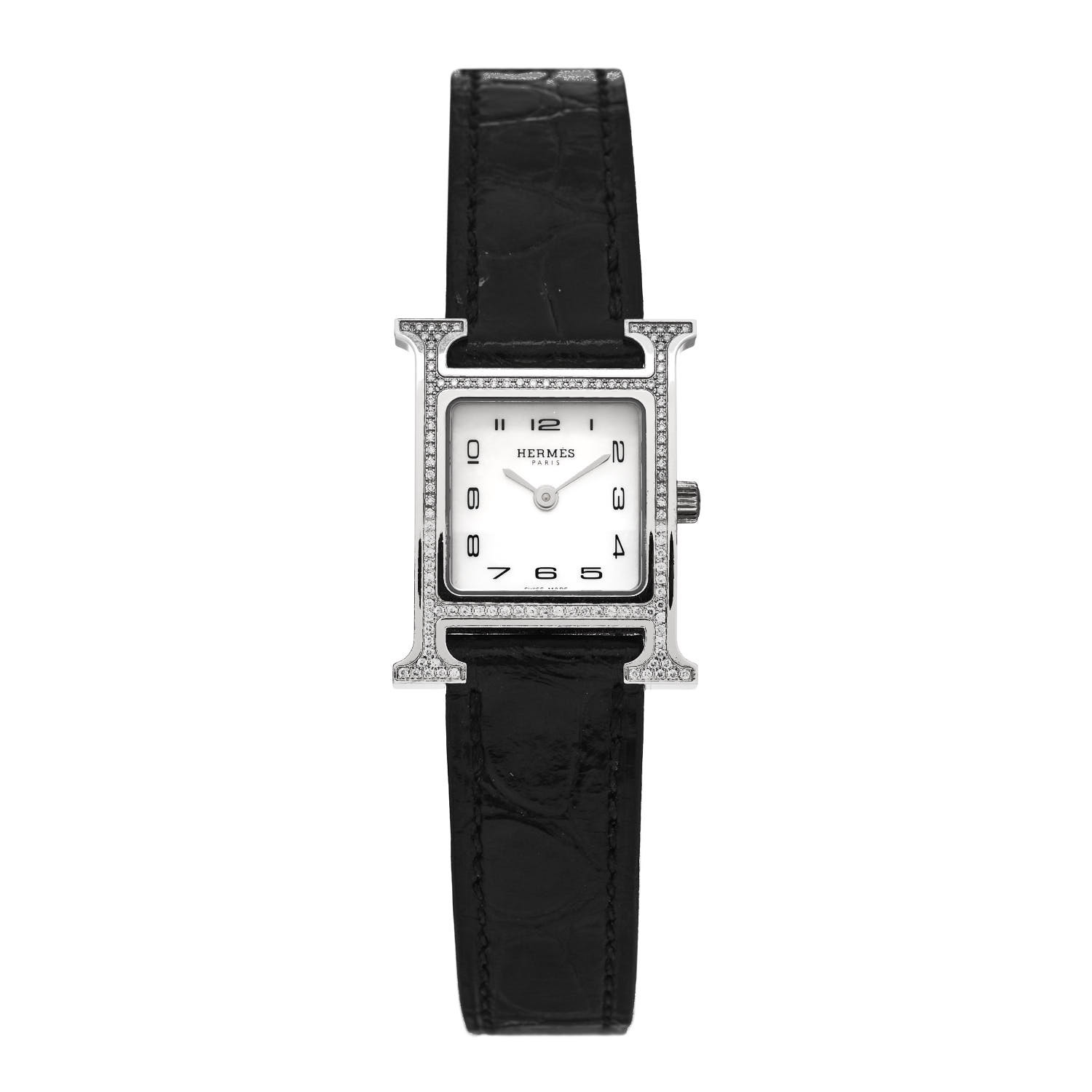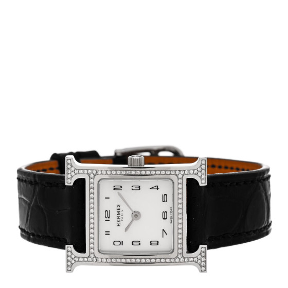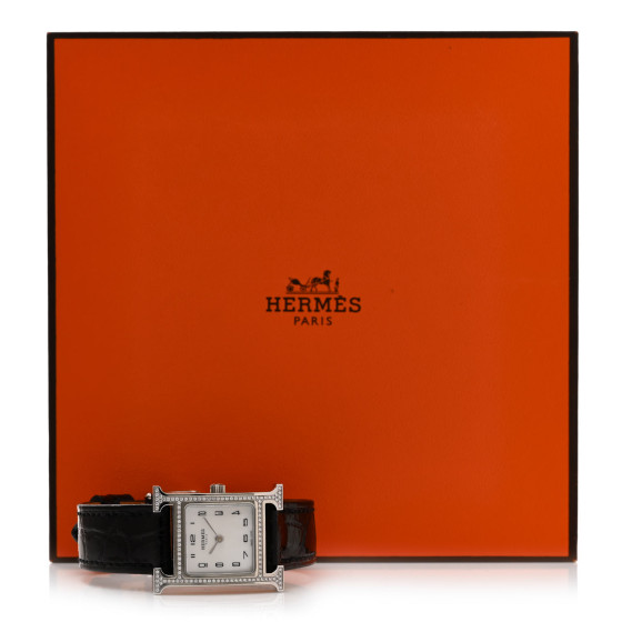 Hermes Stainless Steel Alligator Diamond Bezel Mother of Pearl 21mm Heure H Hour Quartz Watch